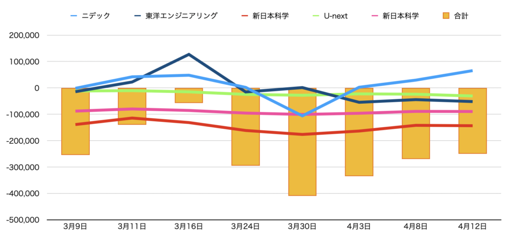 合計の含み損が5万円程度まで回復し、