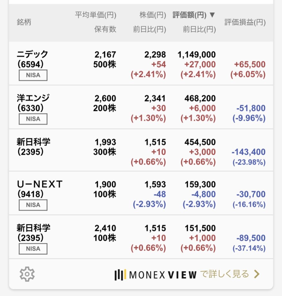 新日本科学さんが、2つあるのは、懲りずにナンピン買をしたからです。