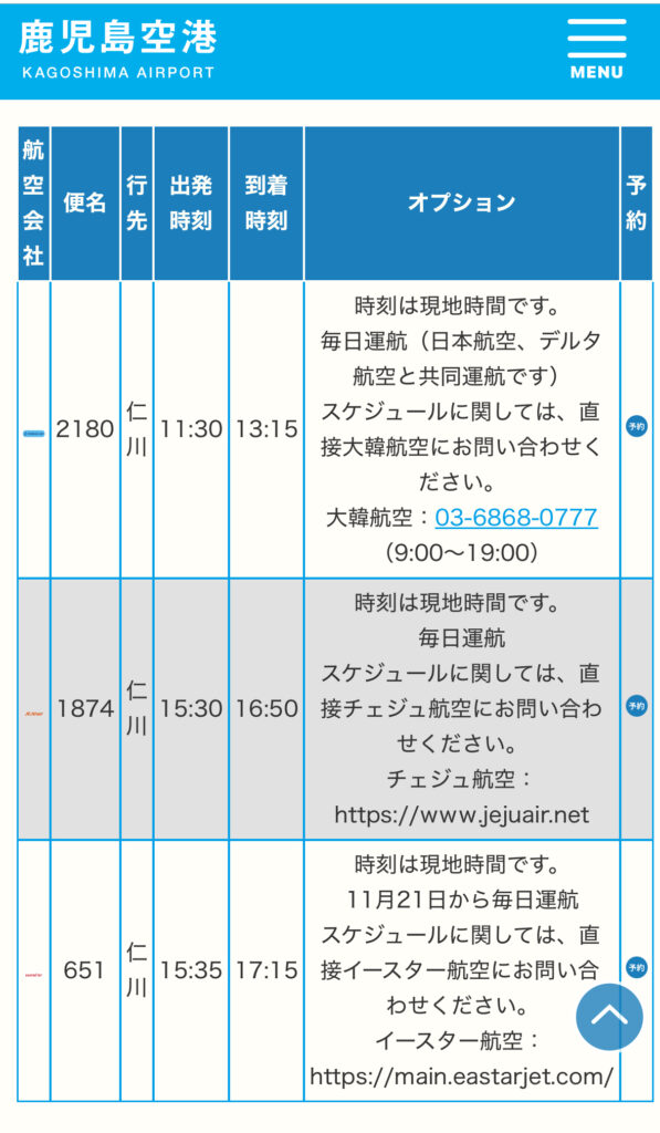 鹿児島からソウルに飛ぶ国際線を確認してみると、
