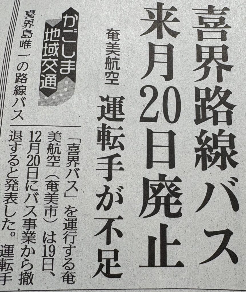 喜界島の路線バス廃止の報道がありました。