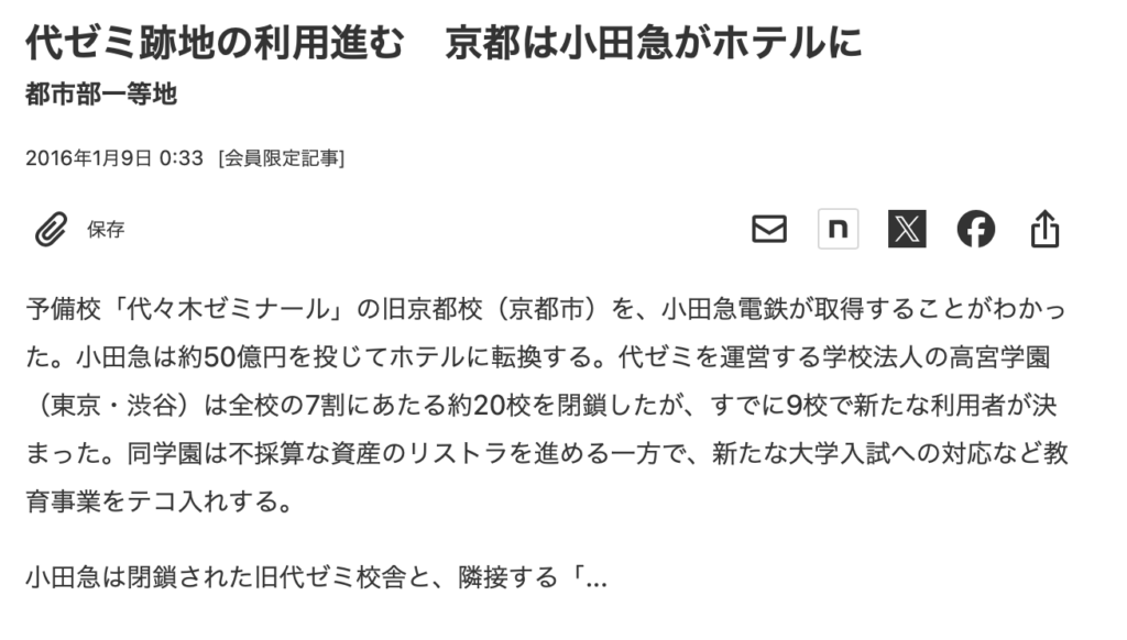 ネットで調べてみると、代ゼミの跡地が小田急のホテルになったことが