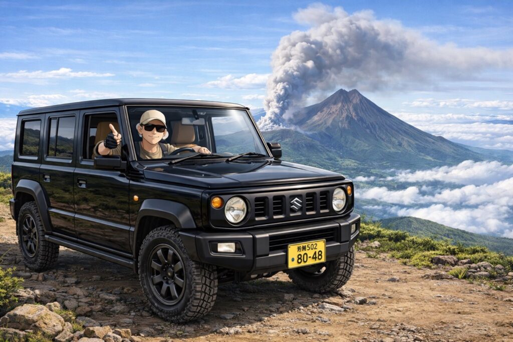 初老オヤジがしっかりとジムニーに乗っているイラストを