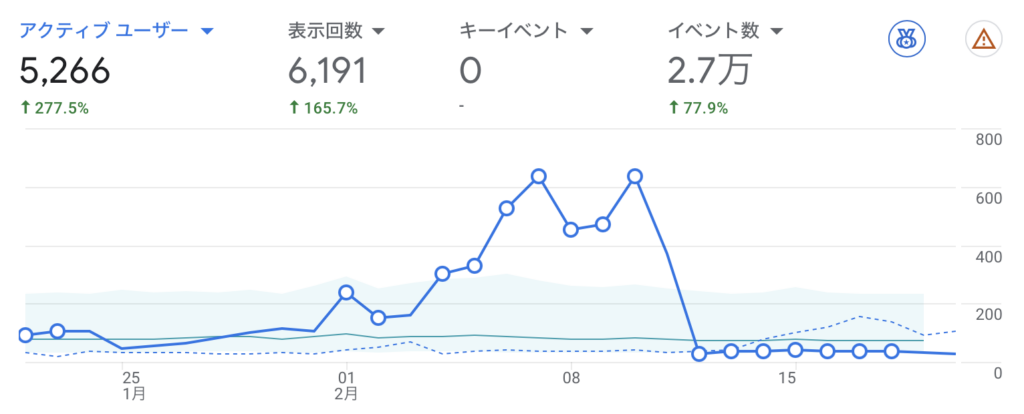 2月8日の前後で、急激にアクセスが増えていることが分かります。