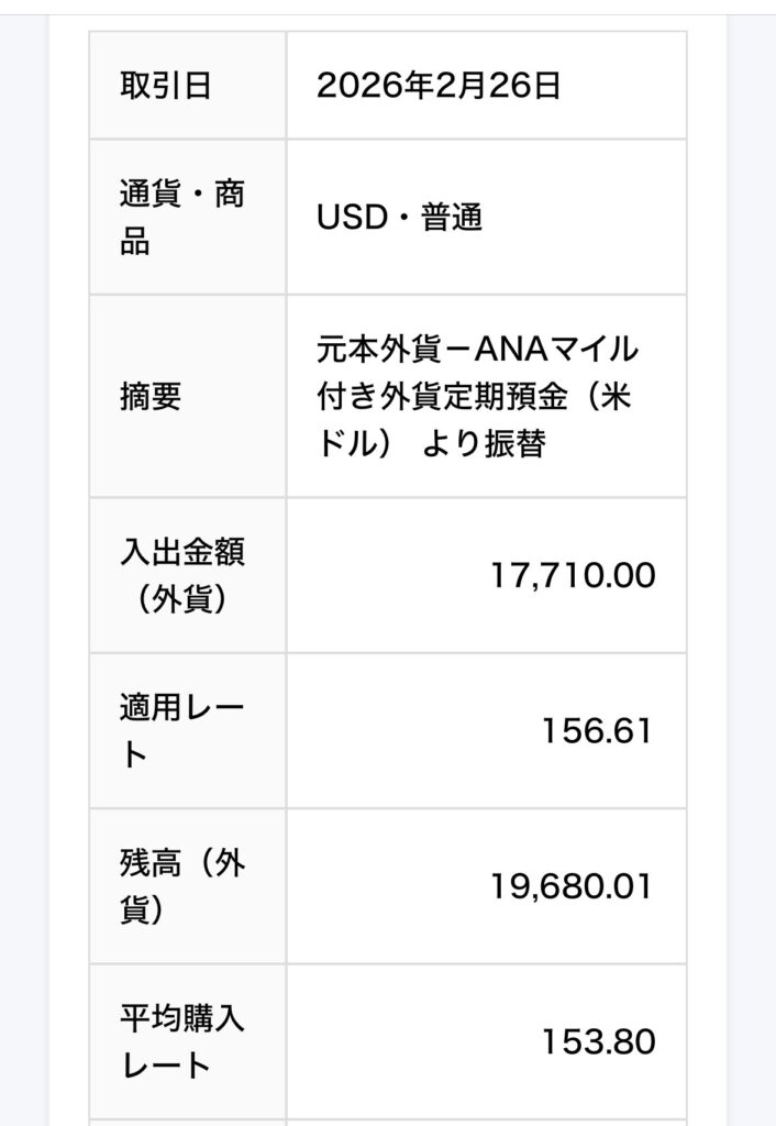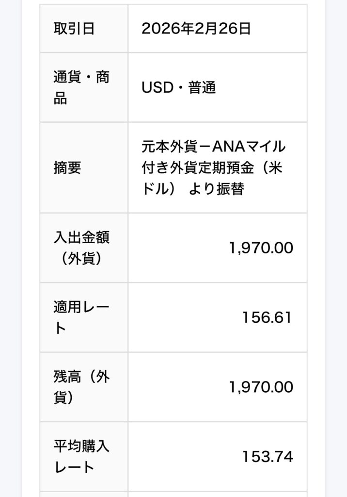 結論として、1月26日に申し込んだ19,680ドルの外貨定期預金は、