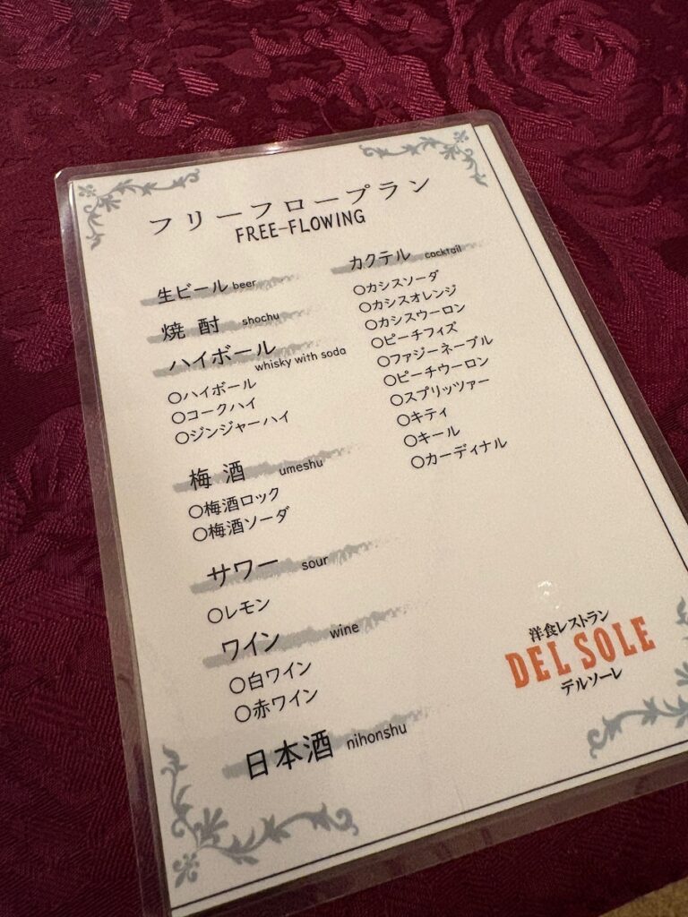 初老オヤジは飲み放題のフリーフロープランをチョイス。