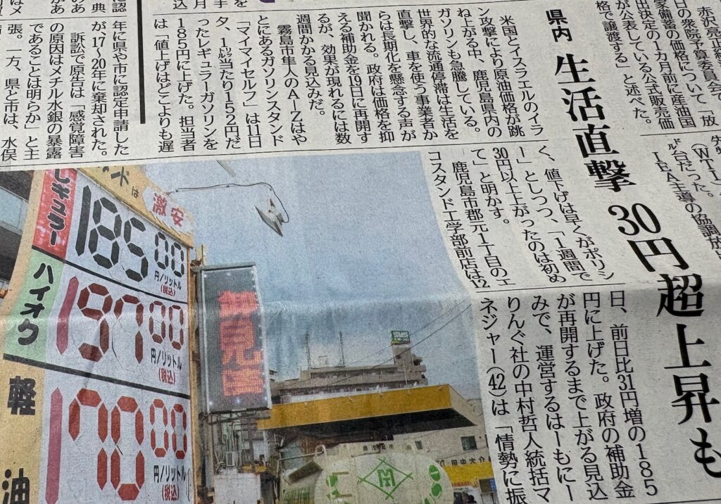 3月17日の新聞では、ガソリン1リットル220円の文字。