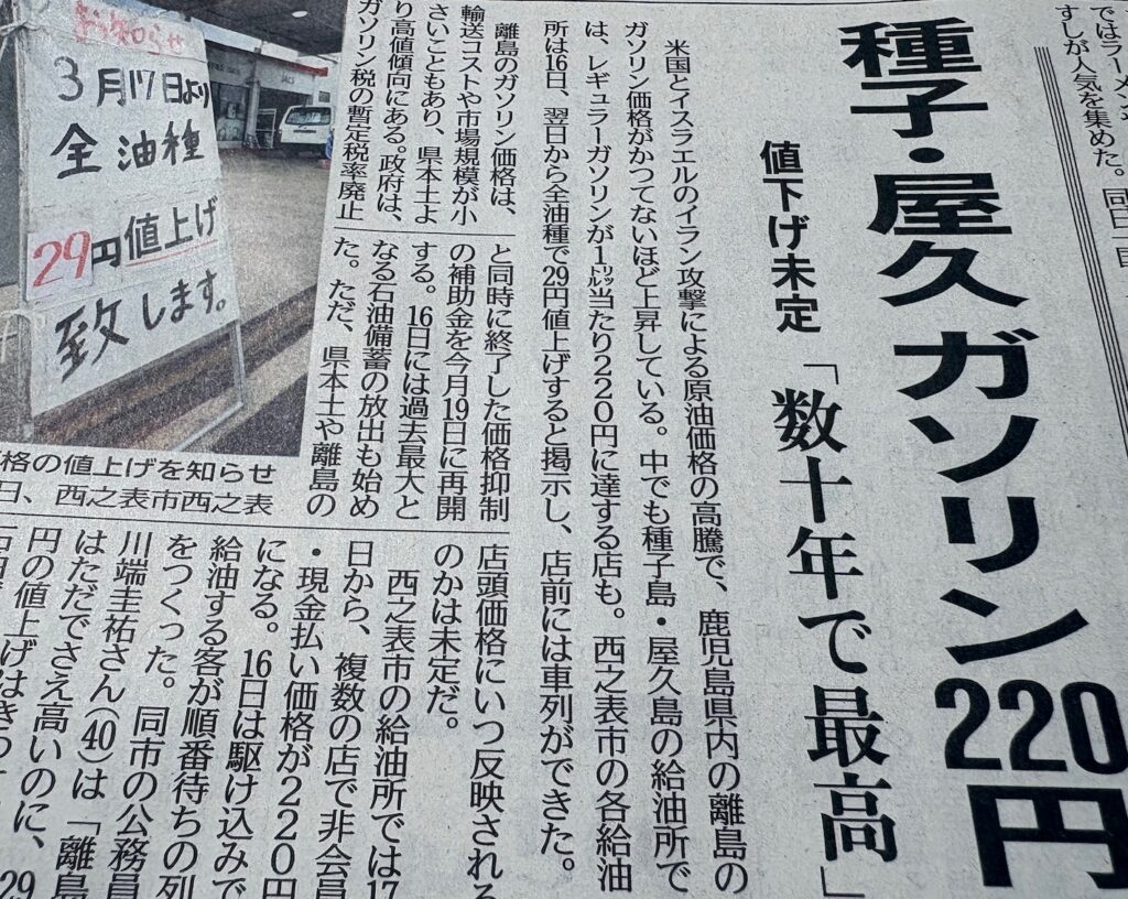 これは、離島の種子島・屋久島の価格ということで