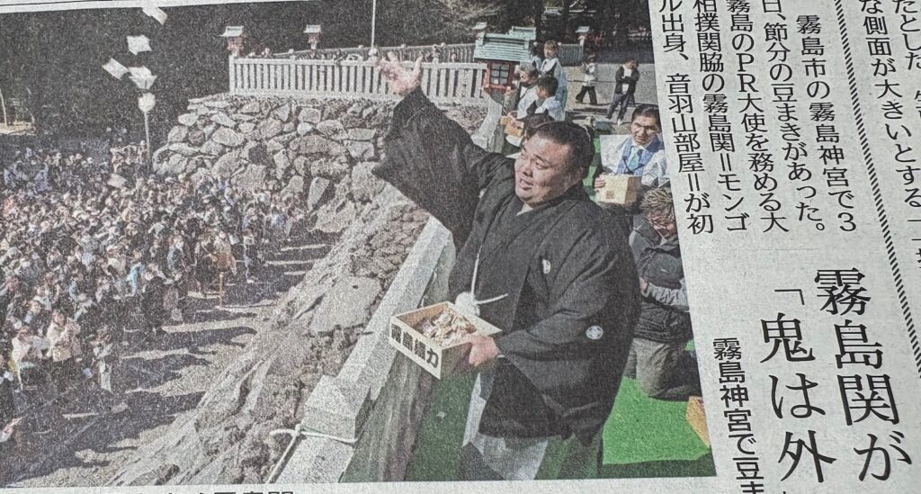霧島市の霧島神宮で豆まきをされています。