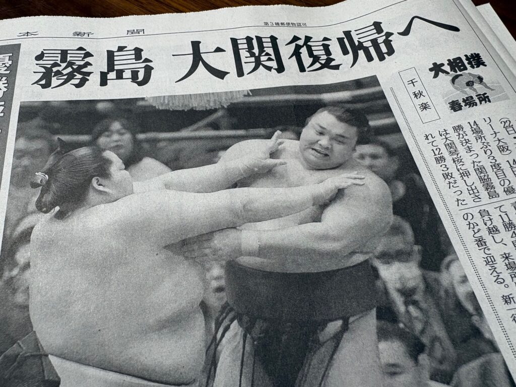 翌日の新聞でも「霧島 大関復帰へ」の