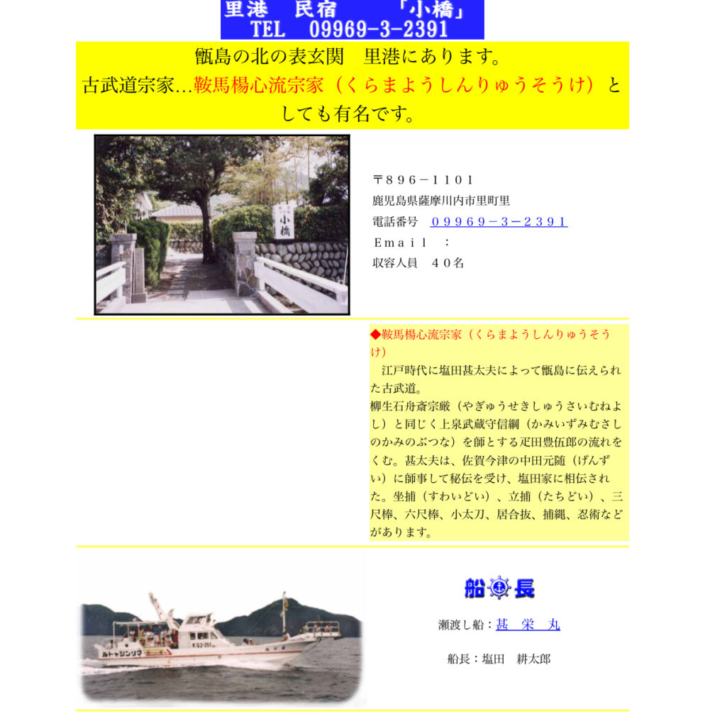 まずは、里港近くの民宿 「小橋」さんに連絡してみました。