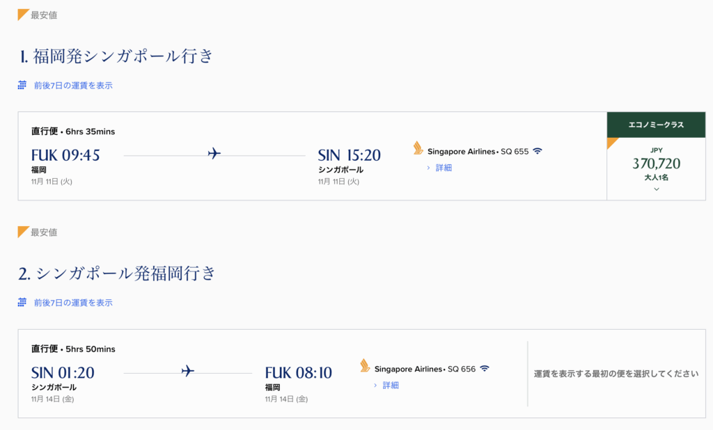 福岡空港からシンガポール航空でシンガポールのフライトは