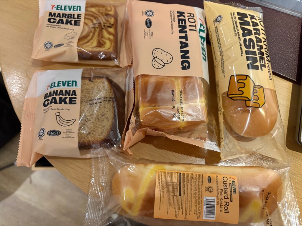 ホテル近くのセブンイレブンで、朝食のパンを購入です。