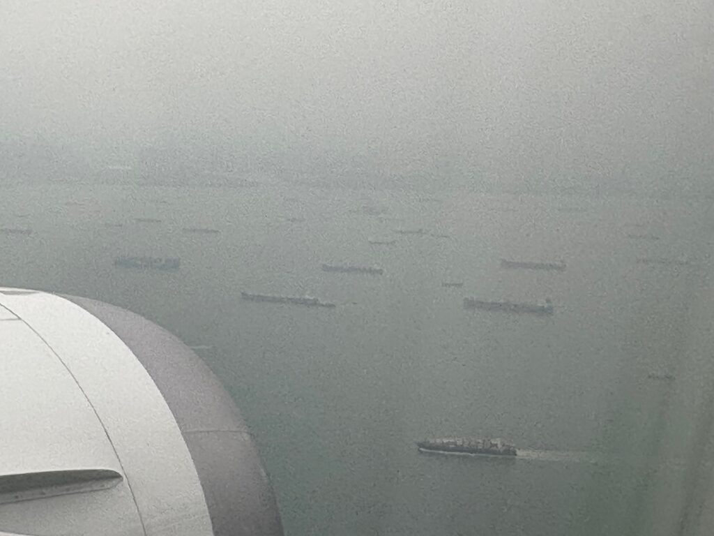 下記は、シンガポール空港周辺の物凄い数の船が沖で待機していましたよ。
