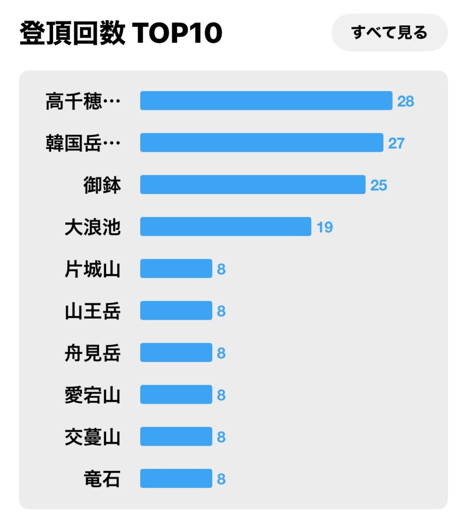 ちなみに韓国岳は27回です。