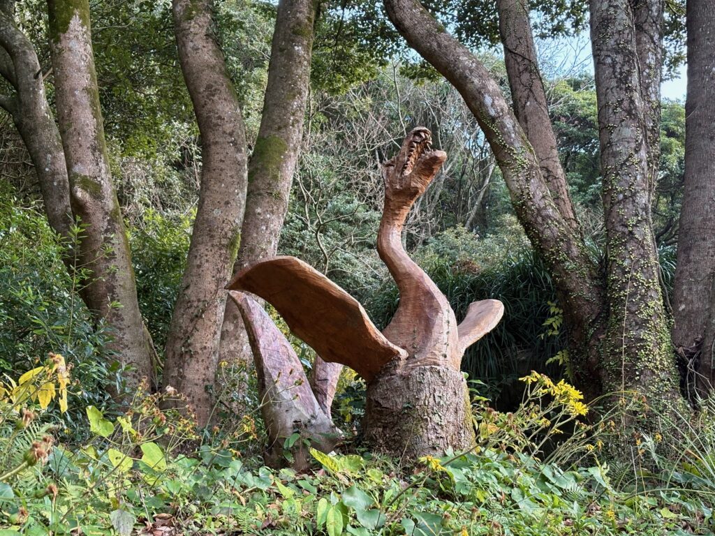 幾つもの生木を使って彫られた彫刻作品がありました。