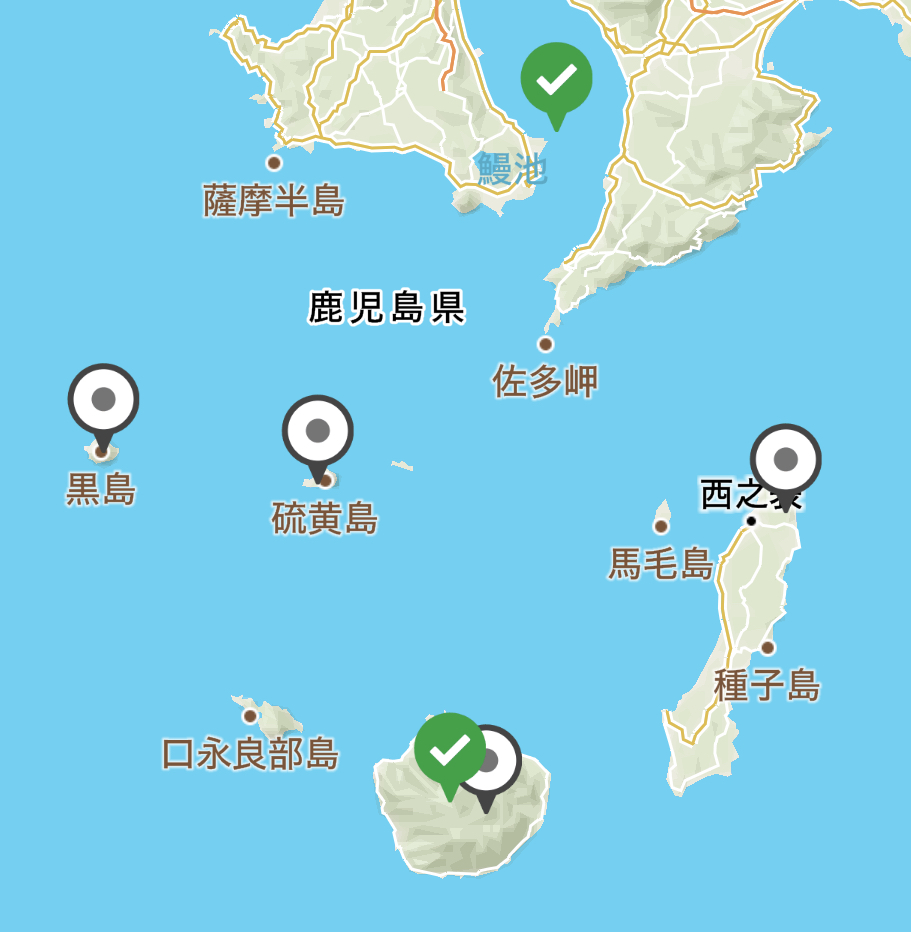 今回は、種子島と屋久島の2つをゲットしてきます。