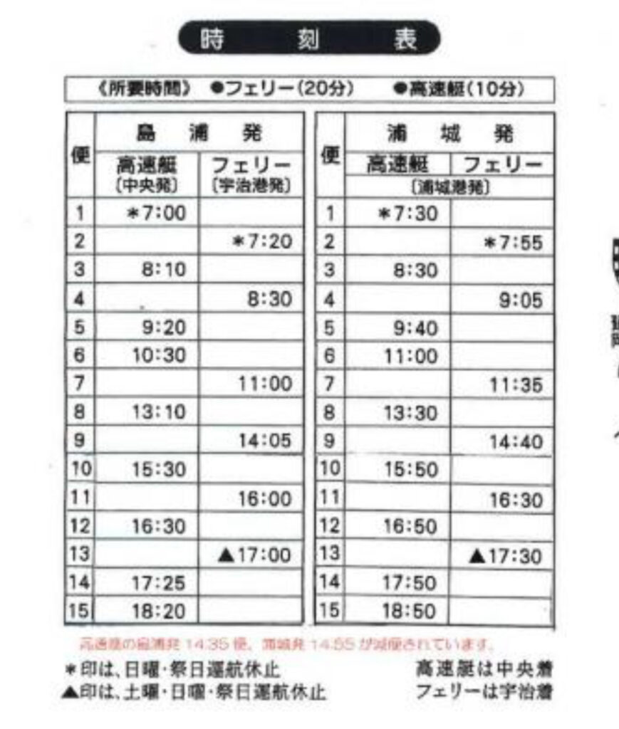 15時50分発の高速艇で島浦に渡るということになりましたよ。