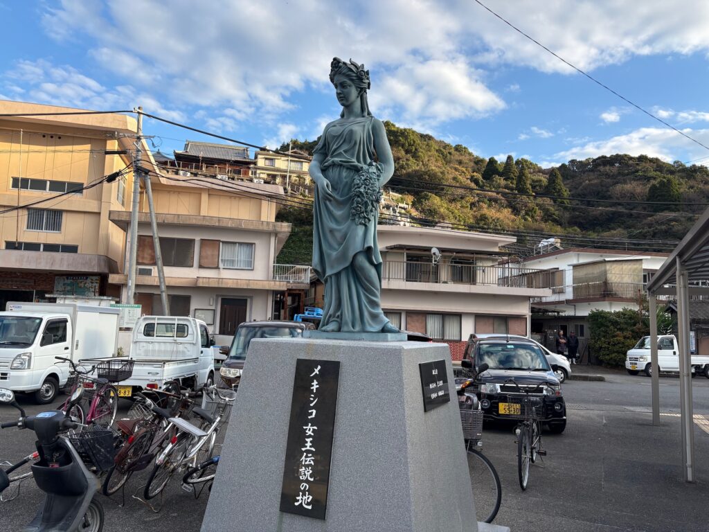 メキシコ女王伝説の地のブロンズ象がお迎えしてくれました。