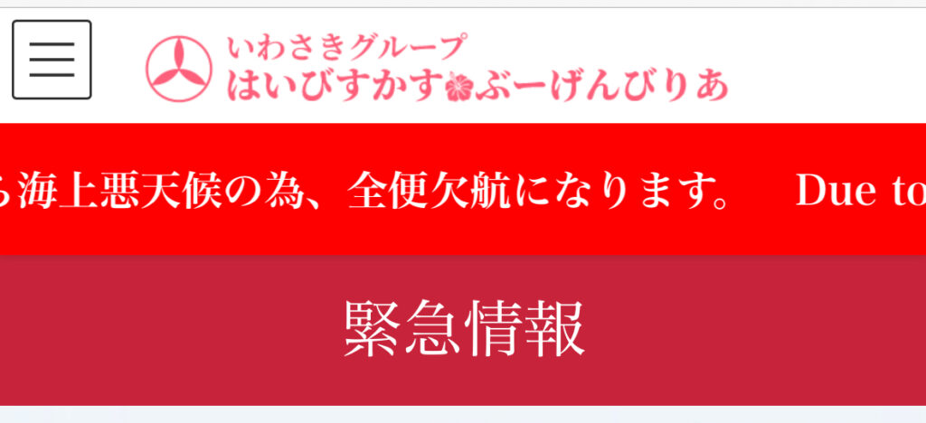 ネット情報を見ると、しっかりと、「海上悪天候の為、全便欠航になります。」