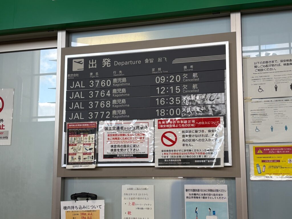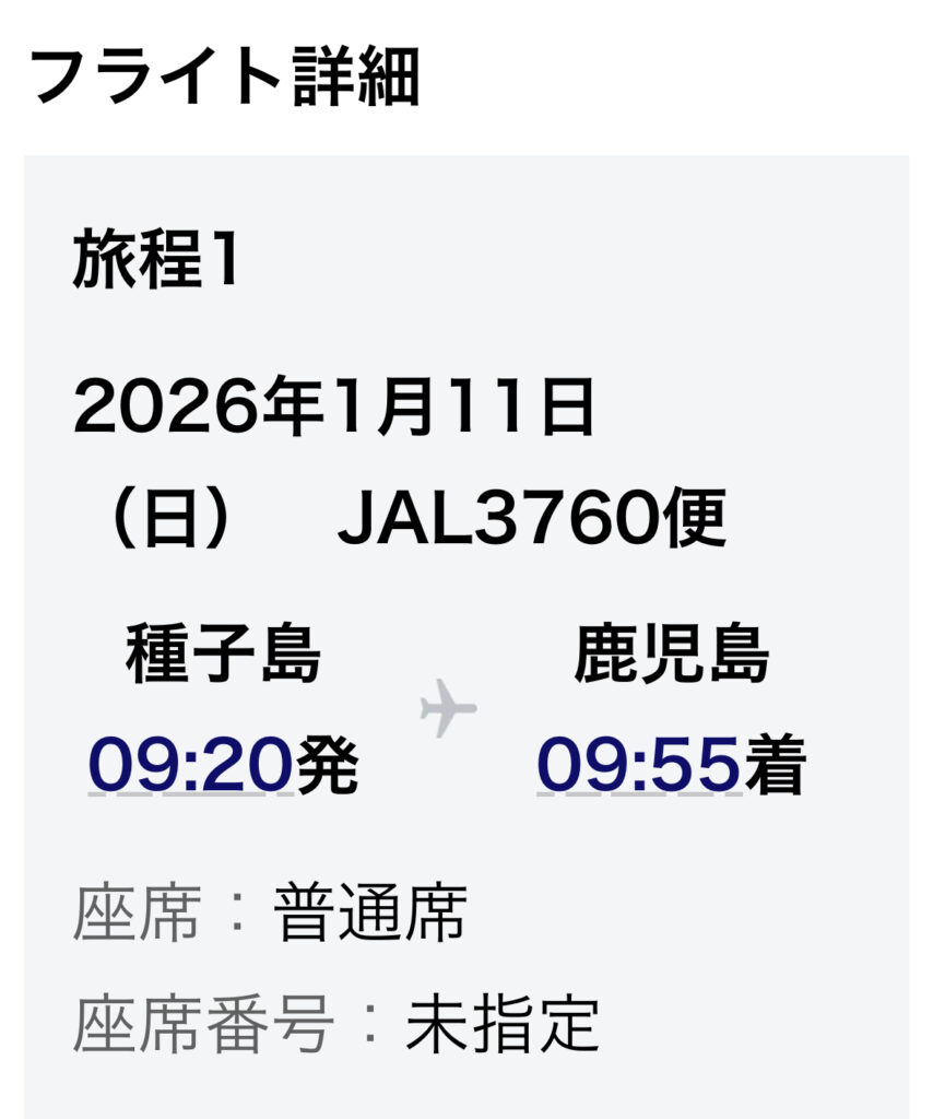 そして、本土の鹿児島空港に2026年1月11日に帰り着くことが出来たのですが、
