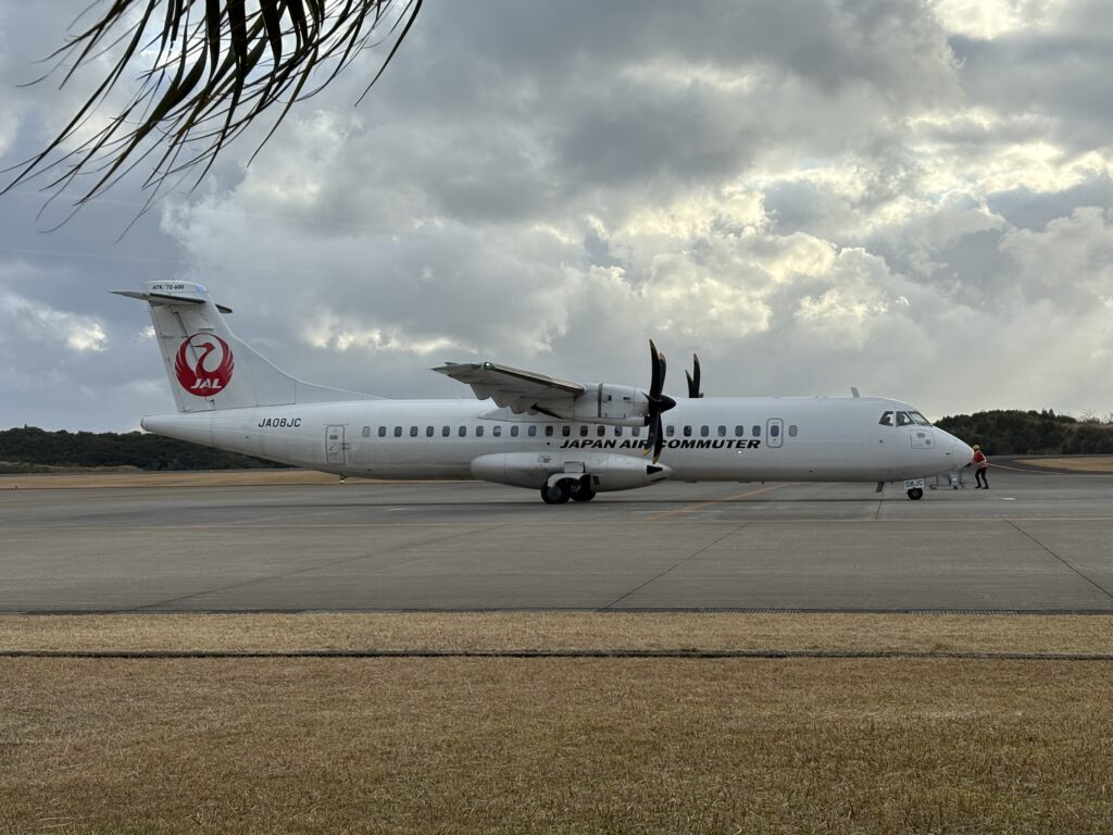鹿児島発の飛行機が種子島に到着です。