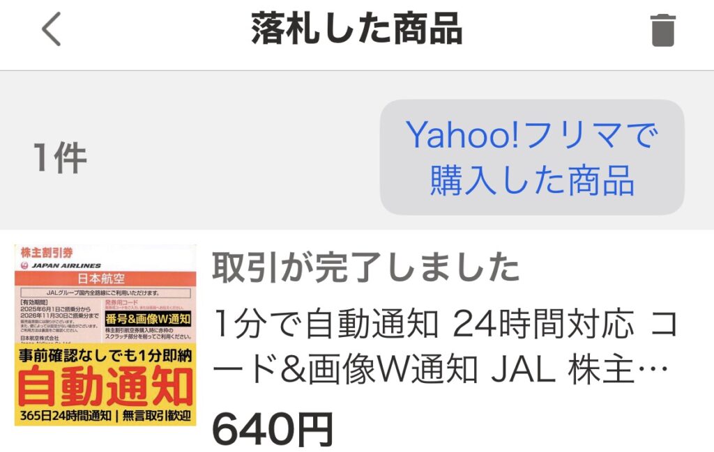 640円で株主優待券を落札するのでした!
