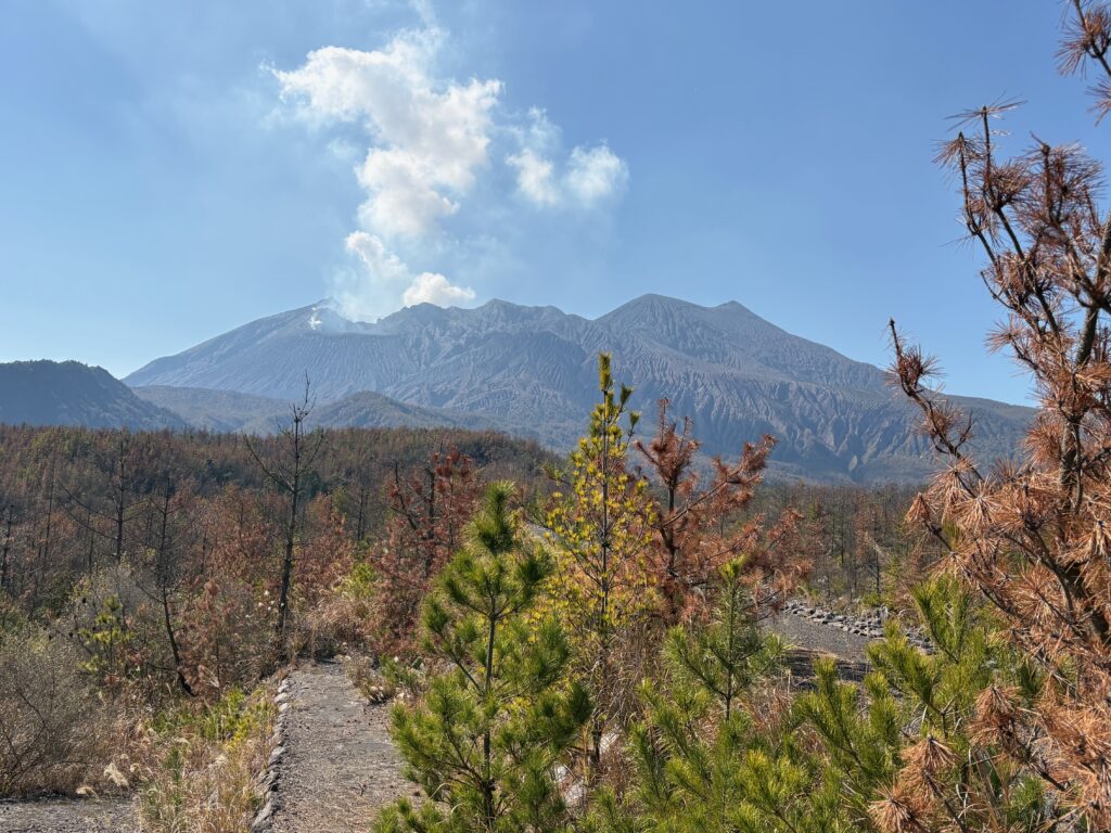 少し桜島が見えない樹林帯を超えて、