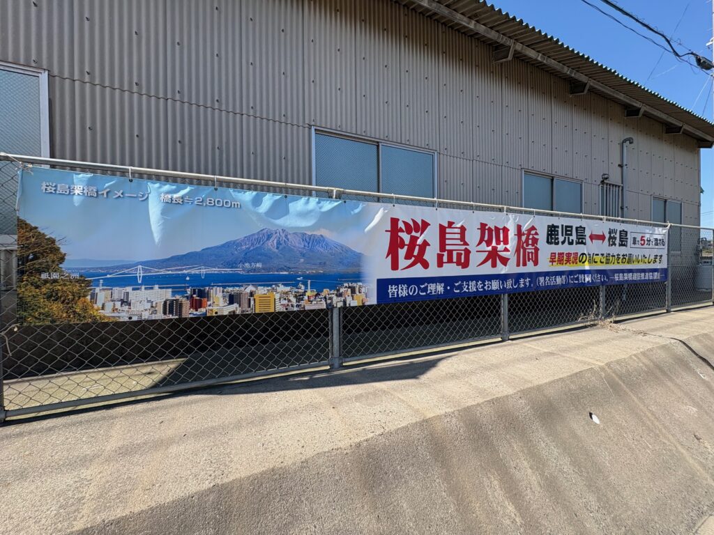 桜島架橋の早期実現を目指す横断幕がありました。