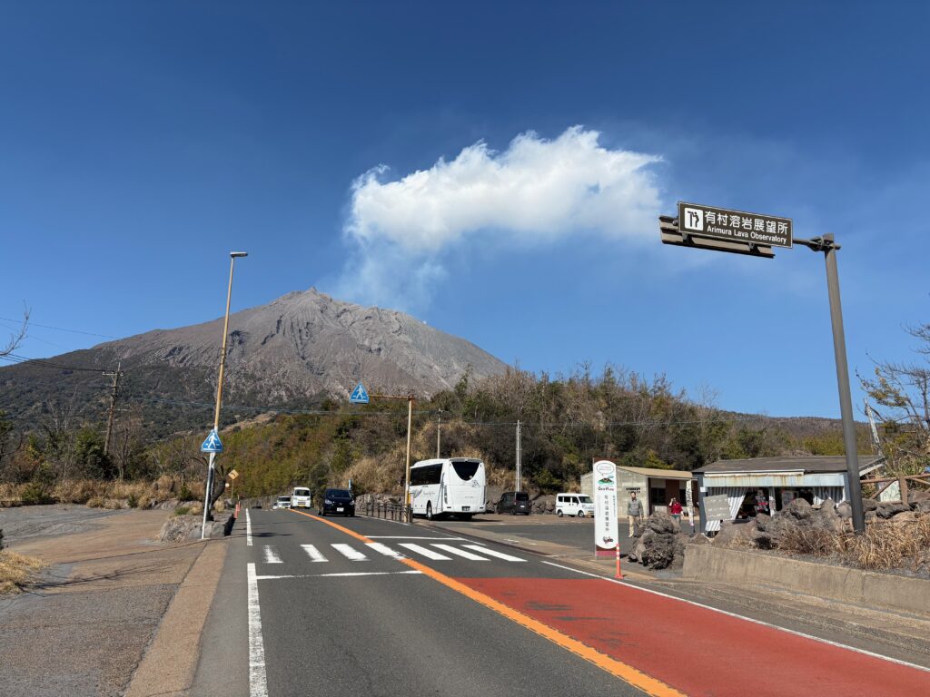 噴煙を上げる桜島を間近でみるのなら、有村地区からですね。