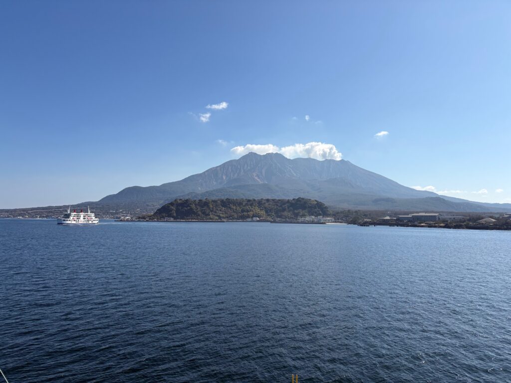 まずは、桜島フェリー乗り場近くからの