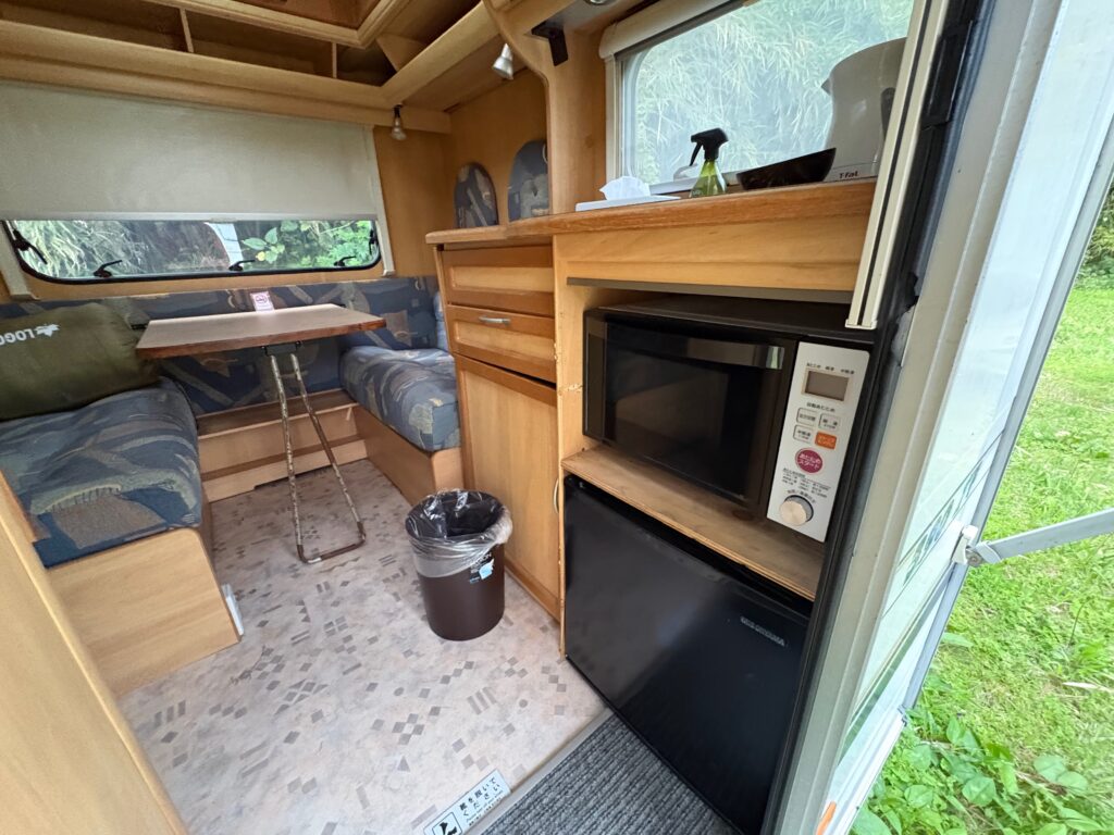 そうそう、キャンピングカーの冷蔵庫と電子レンジは使用可能とのこと。