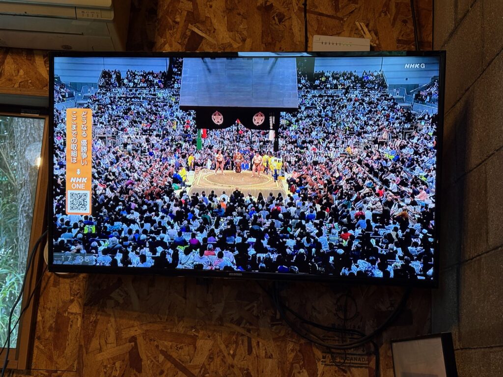 大相撲を観戦しながらの夕食なのです。