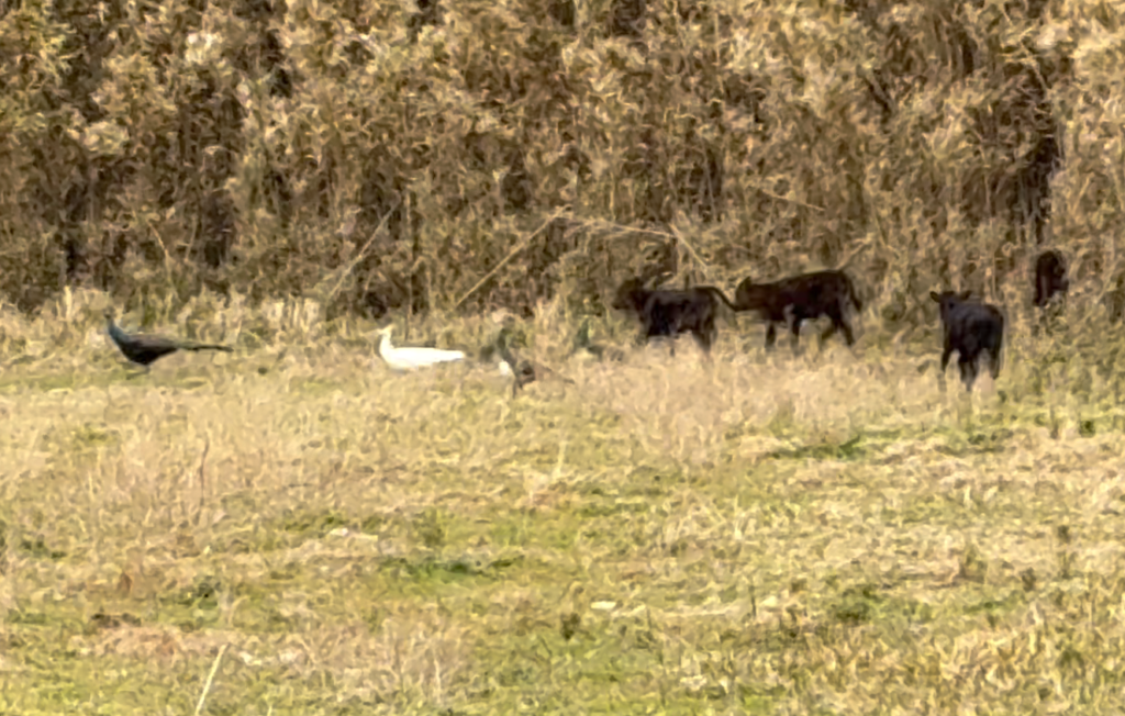 子牛たちは、キジ、白キジを追いかけて