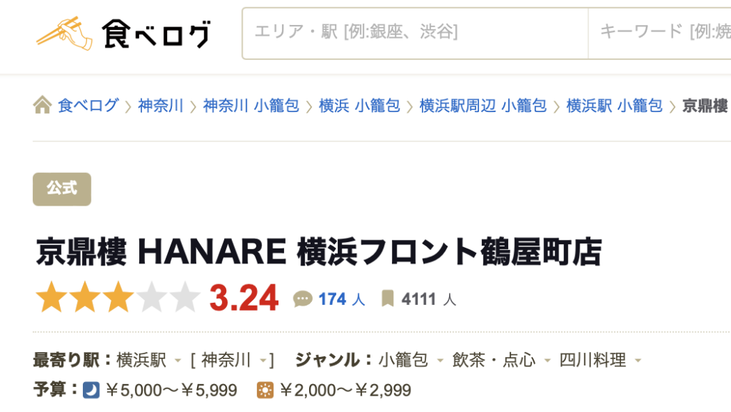 食べログの評価は、3.24です。