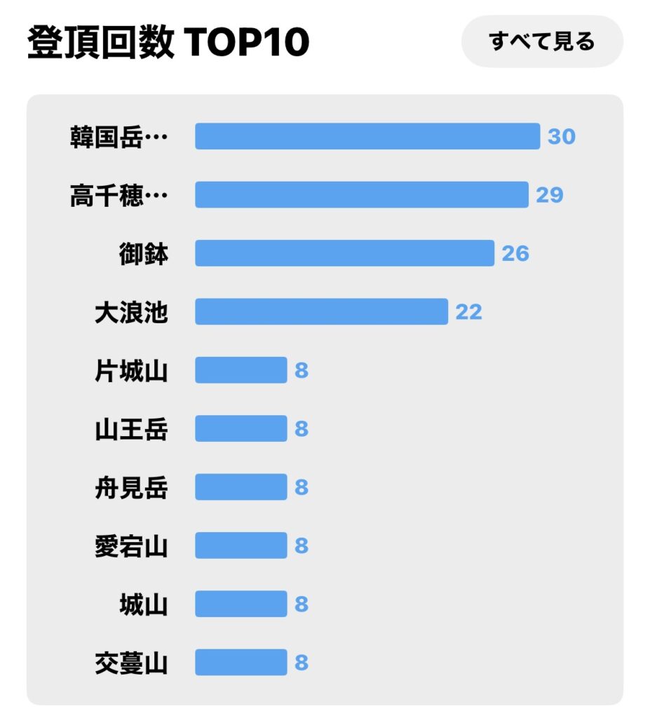 YAMAPさんに自動的に登頂回数が記録されるのですが、