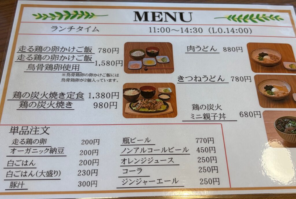 看板メニューの「鶏の炭火焼き定食」を